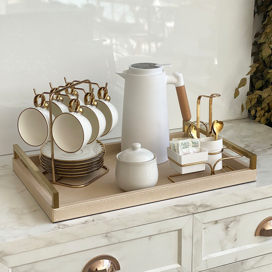 Açucareiro de Vidro Com Colher Tampa e Suporte Rose Gold Luxo