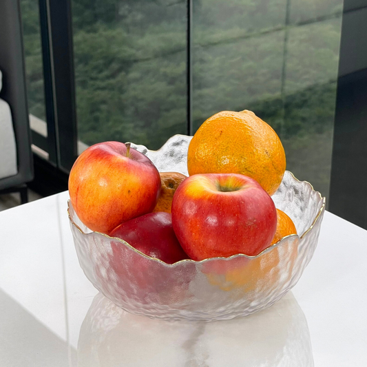 Bowl Cristal de Chumbo Martelado com Borda Dourado Taj 19cm
