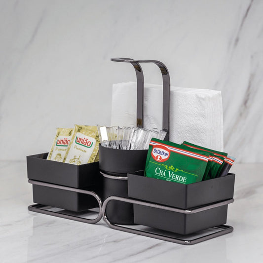 Conjunto para Chá Café Porta Sachês Mexedor Ônix 3 em 1