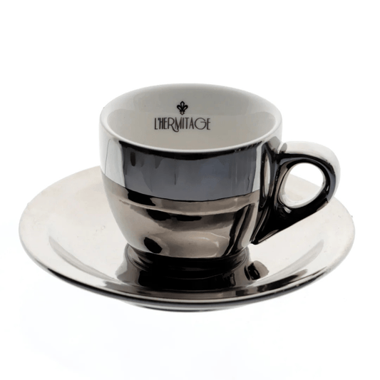 Jogo 6 Xícaras de Café Com Pires Porcelana Branco Com Fio Prateado - 80ml