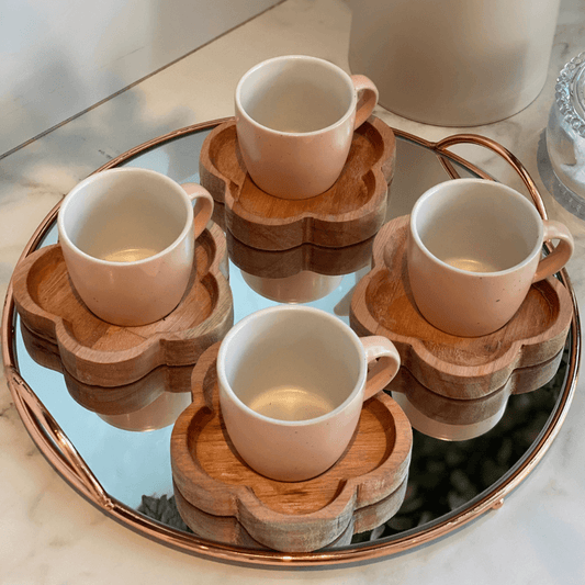 Jogo 4 Canecas com Pires de Madeira Salmon Liptus 115ml