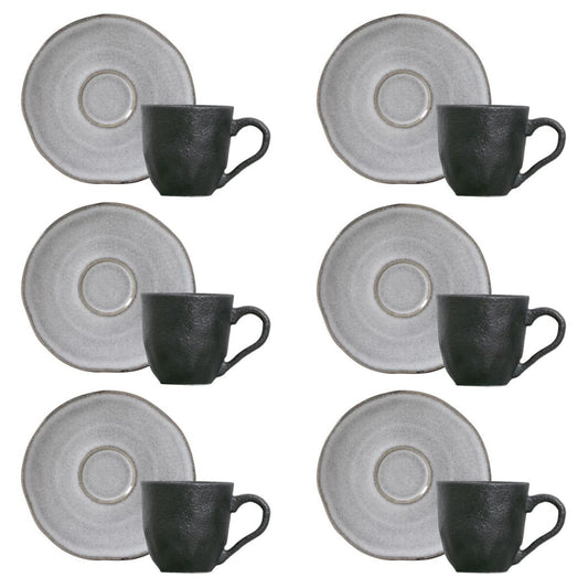 Jogo 6 Xícaras de Café com Píres Orgânico Concreto Cinza 120ml