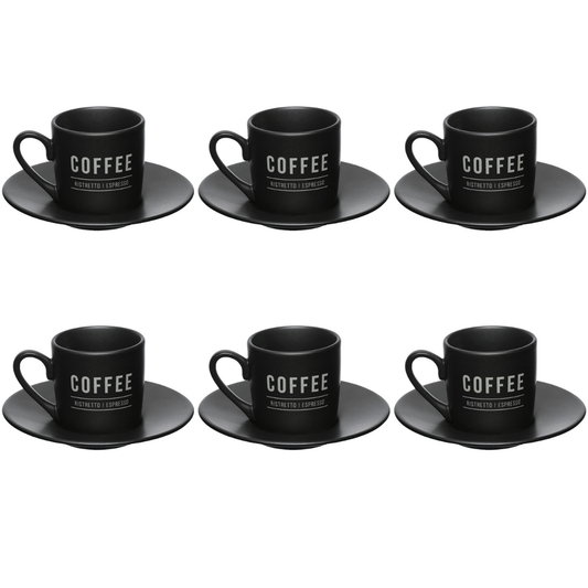 Jogo Xicara de Café com Pires Manhattan Preta 80ml 6 Peças